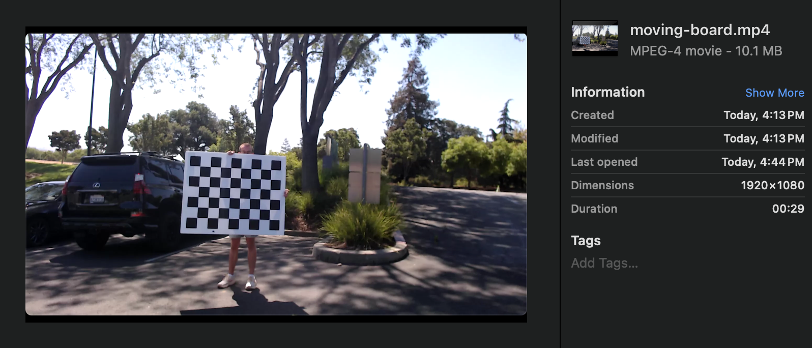 Here is a 30-second video of a moving chessboard: