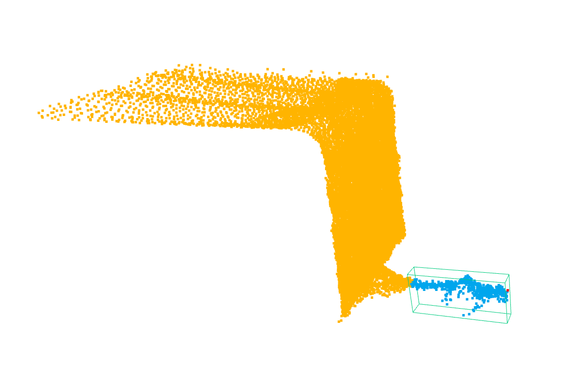 To be able to find the trailer tongue, I am using the optimize. minimize function from SciPy, it is used to find the minimum value of a function. I aggregated a lot of point clouds scanned in the first few seconds to increase accuracy for detection. To be able to use my loss function, I first stored a 3d point cloud model of the trailer tongue. Then the loss function's goal is to find the part of the point cloud that had the "best fit" with the model.